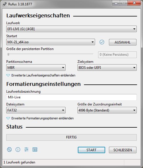 Das vorher installierte Windows von Microsoft habe ich belassen, für den Fall,